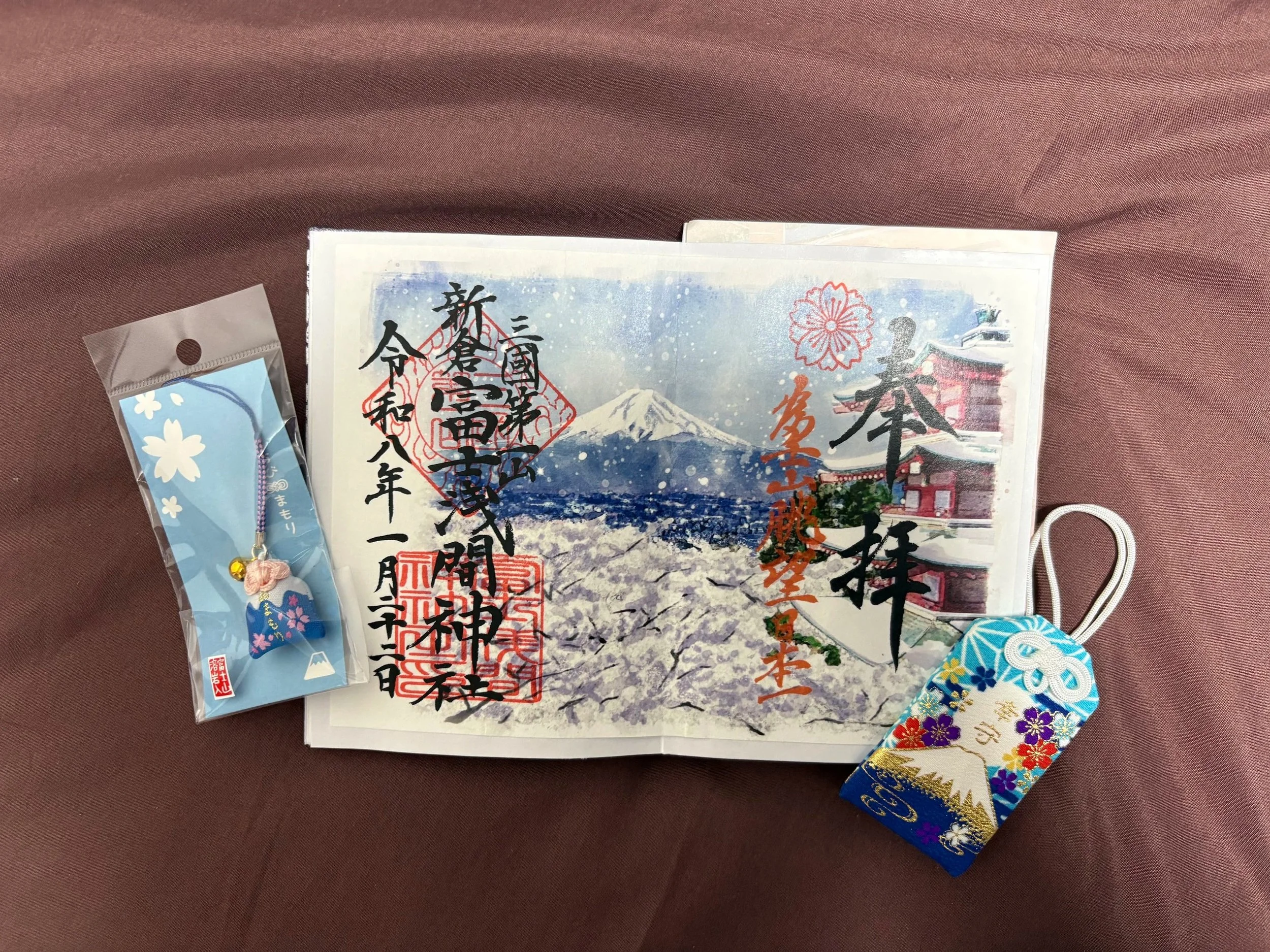 Mount Fuji Goshuin and Lucky Charms from Arakurayama Sengen Park